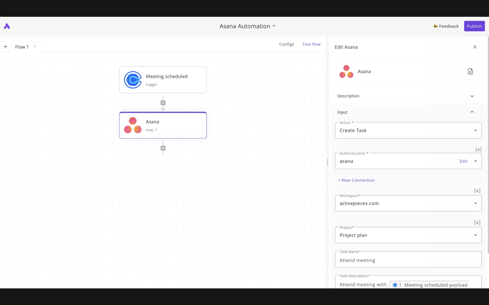 Activepieces is a no-code tool that can automate your business with Asana and other apps. For example, you can get notifications on Slack for a specific task activity from Asana, or add a task from specific emails you receive in your inbox. Sky is the limit!