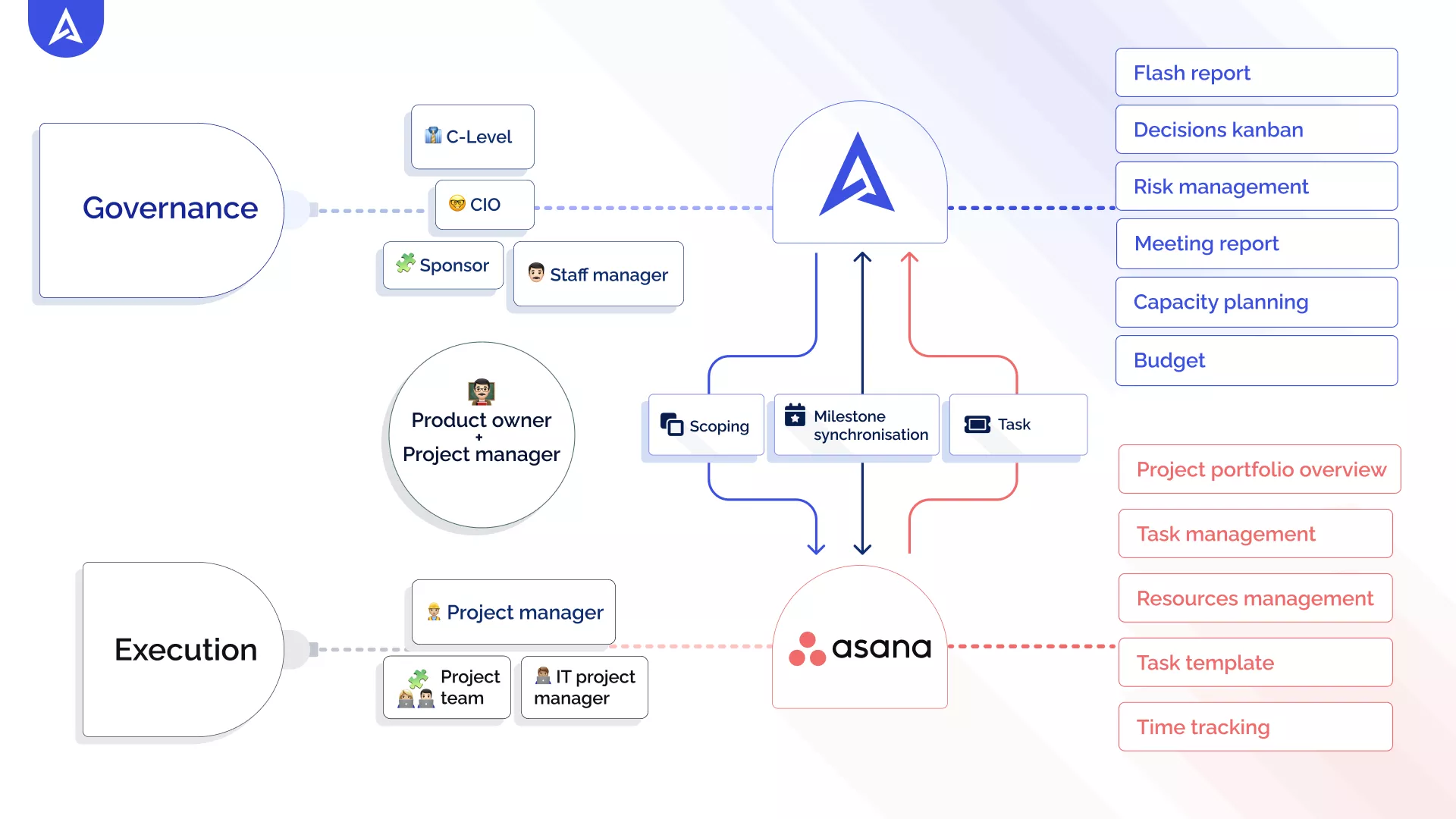 The AirSaas integration automatically brings up the decisions made by the management on Asana. Your project briefing note is pushed into the Asana project brief, the start and end dates of the project are synchronized there, and all your project milestones are updated on Asana. Once AirSaas + Asana is configured, nothing changes for your teams, who can continue to work as before on their favorite project management tool.