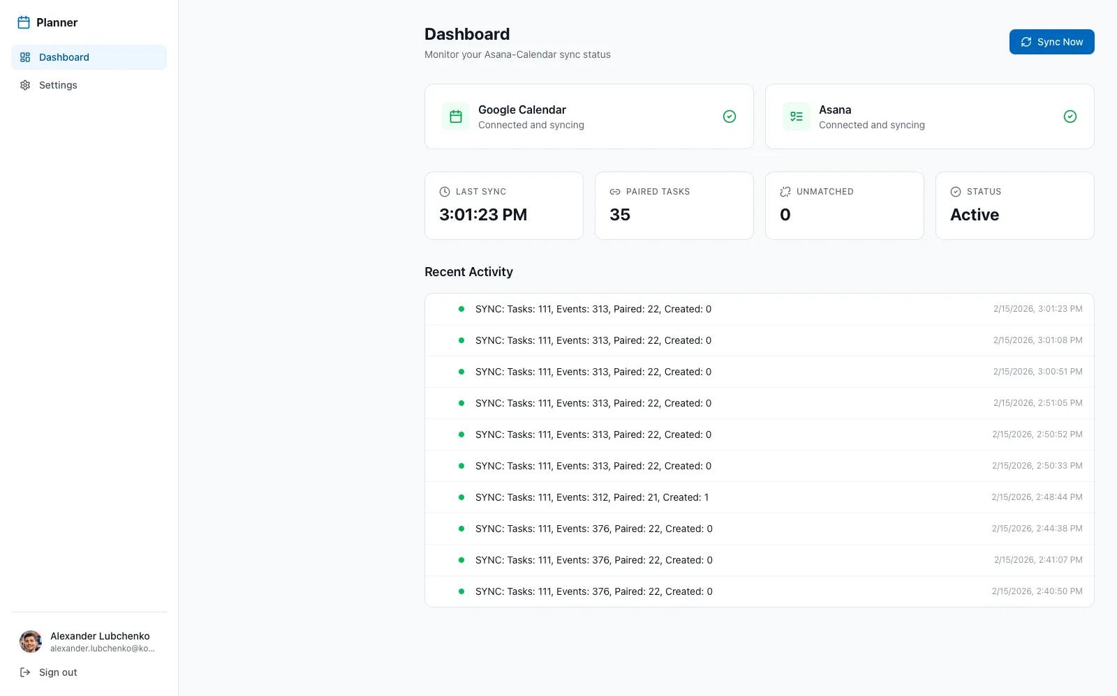 Automatically sync Asana tasks with Google Calendar. AI matches tasks to events, suggests optimal time slots, and keeps everything in sync — so you can focus on what matters.