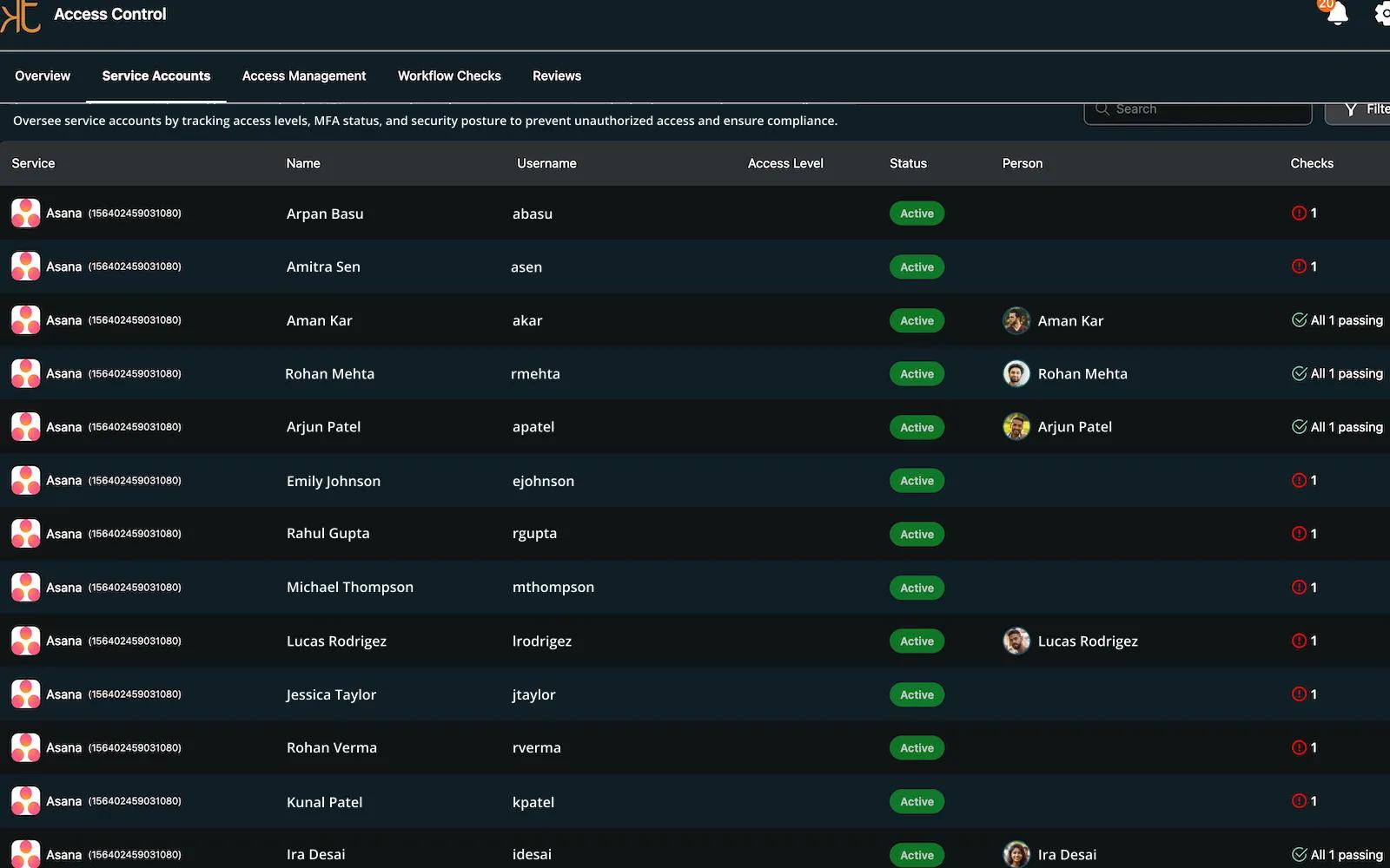 Kawach.AI is a GRC platform which continuously monitors the Asana workspace to ensure that only entitled users have access to the workspace as per the organization's access policies. If any user exits the organization or their role changes such that they no longer need access to Asana, this is flagged and the admins are notified for remedial action. Kawach.AI also helps present this compliance with access management policies as evidence during security and privacy audits.