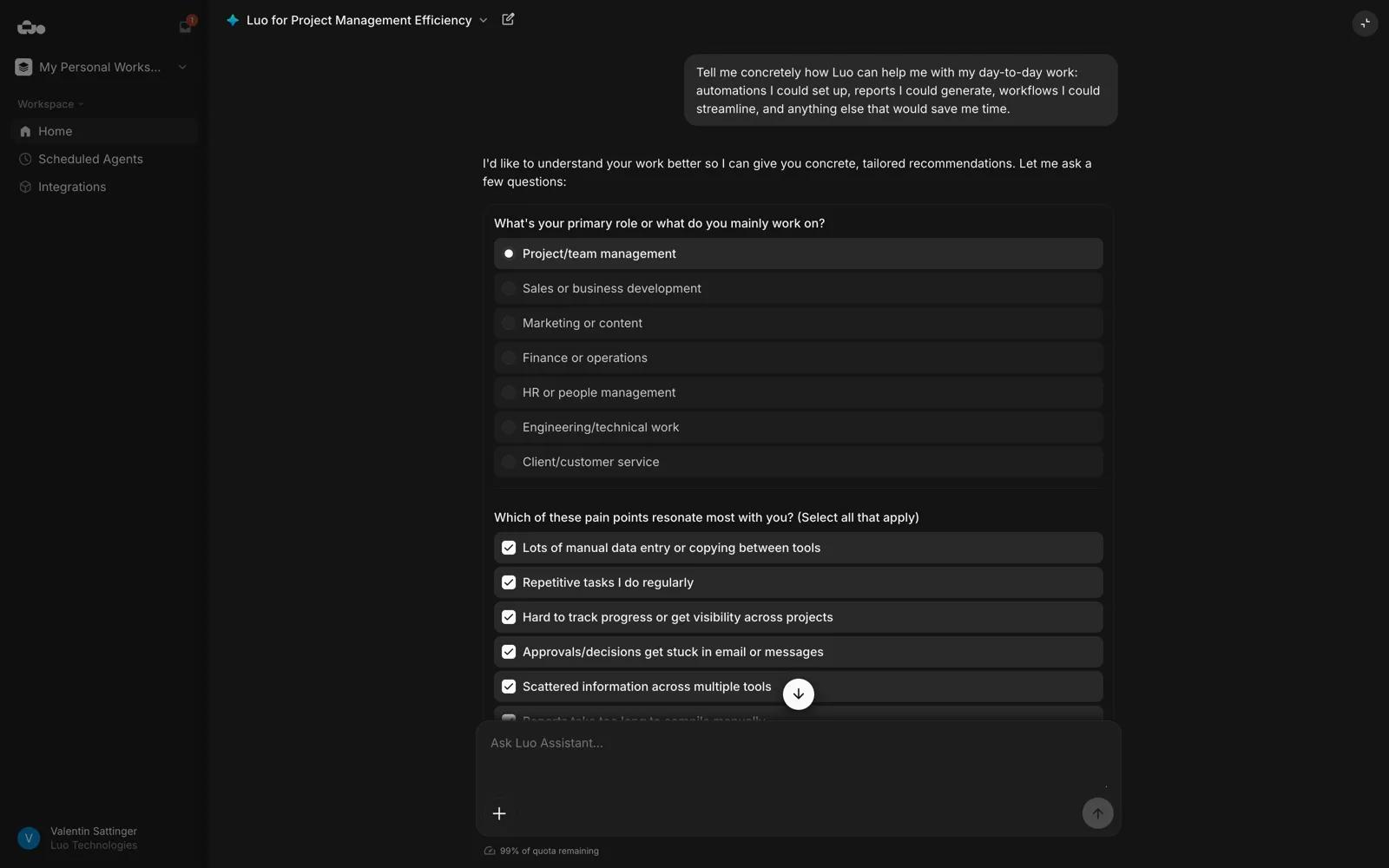 Connect Luo to Asana to automate task management and build custom workflows using Luo's AI Assistant