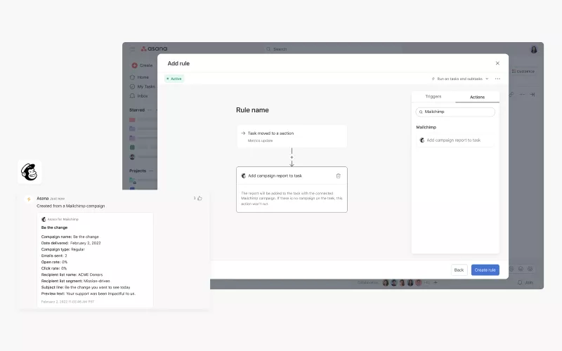 Here’s how to set up the Asana Rules integration with Mailchimp: