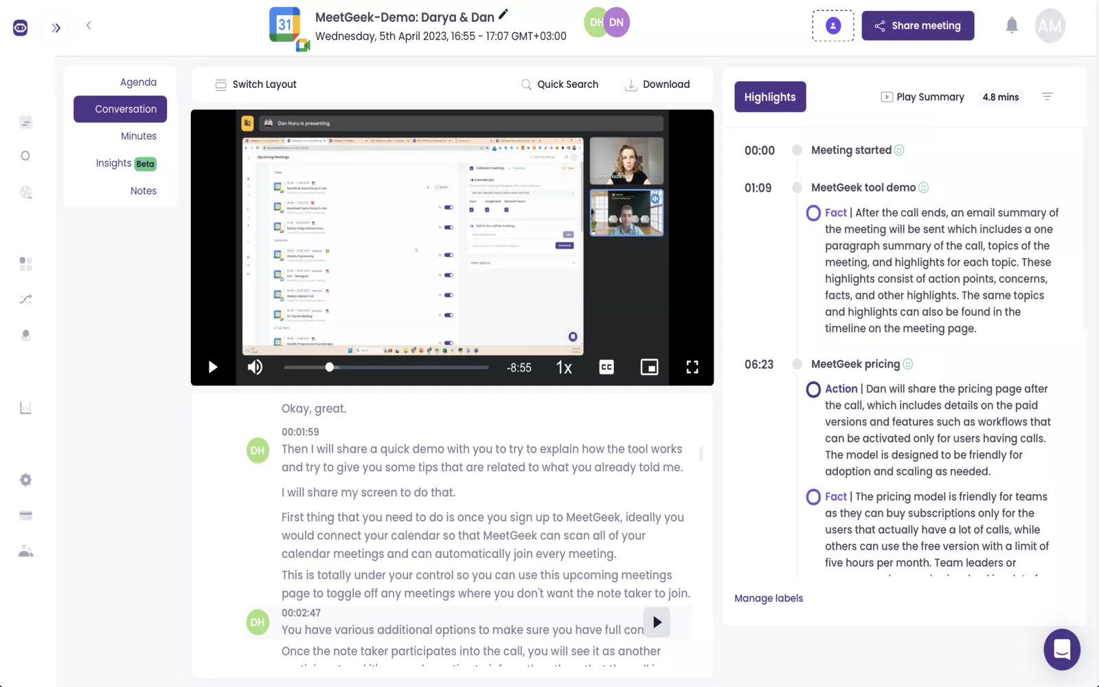 - Capture meeting summaries and highlights with full context
