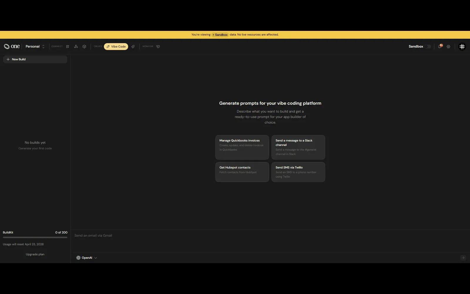 One is an integration infrastructure that gives any AI agent uncapped real-world tools and a vibe-coding workflow builder. OneTool ships not just full API schemas but human-vetted knowledge of scopes, limits, and other prerequisites so calls land right the first time. AuthKit locks down OAuth, token rotation, and network traffic, while BuildKit turns a plain-language prompt into a live connection in seconds.