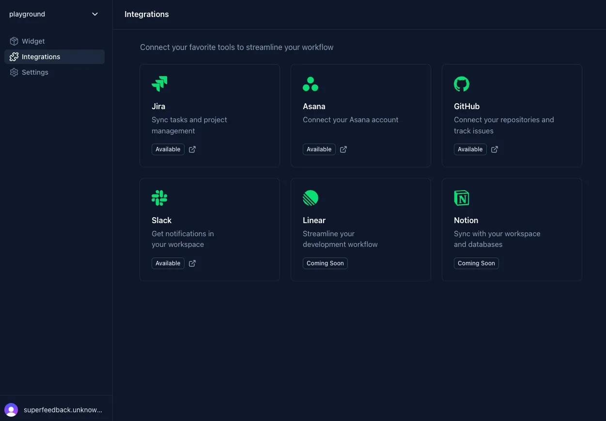 Connect Superfeedback with Asana to enable users to send tickets and feature requests.