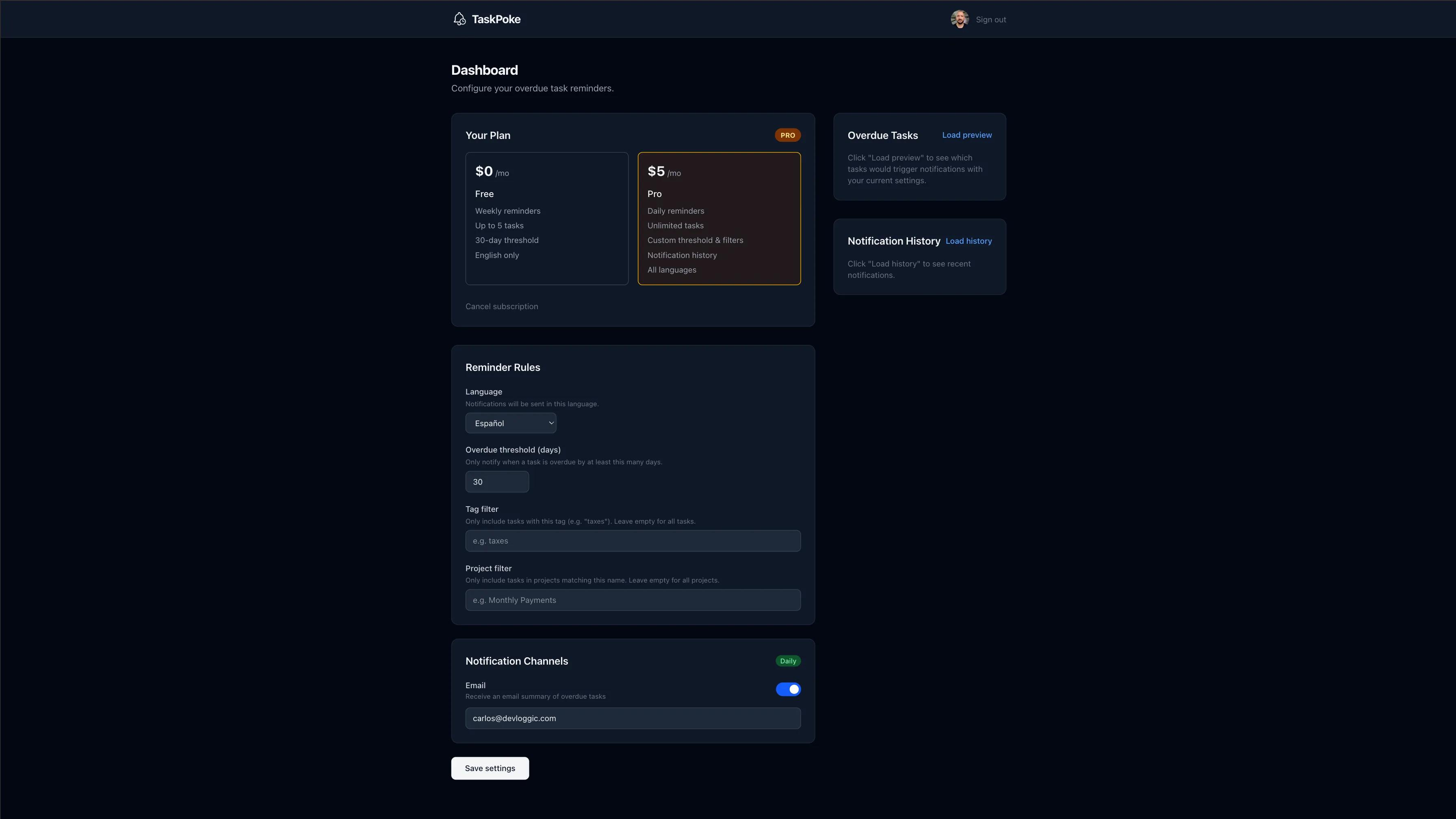 If you have questions, feedback, or need support, visit the TaskPoke support page.