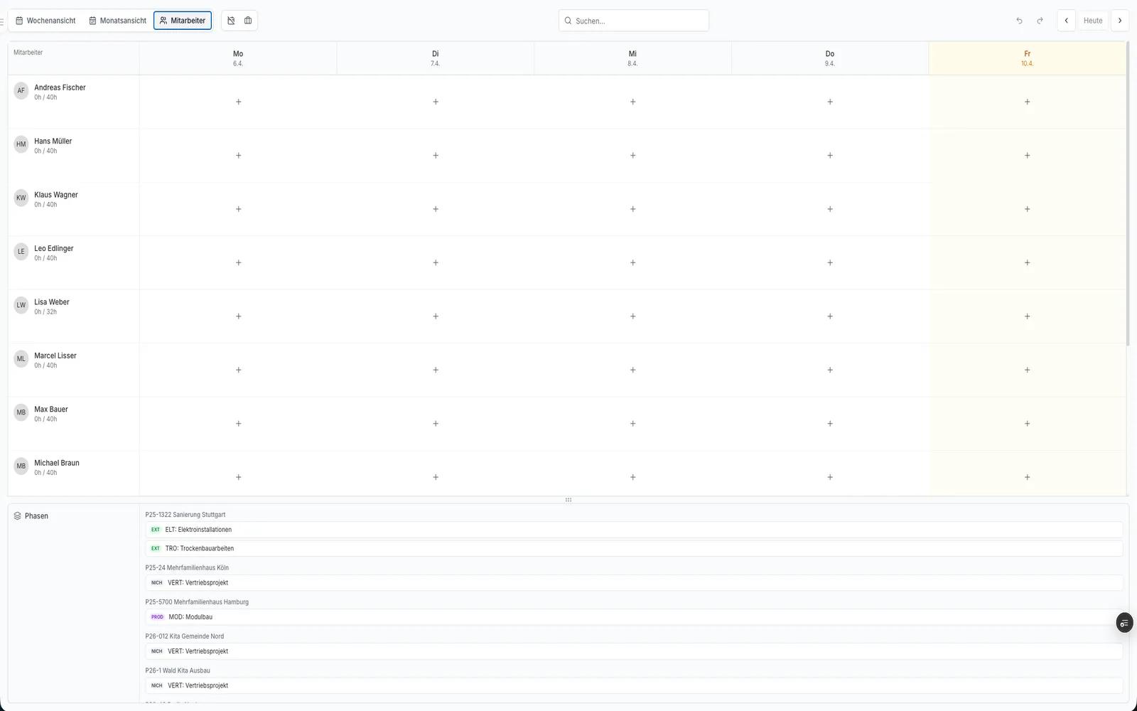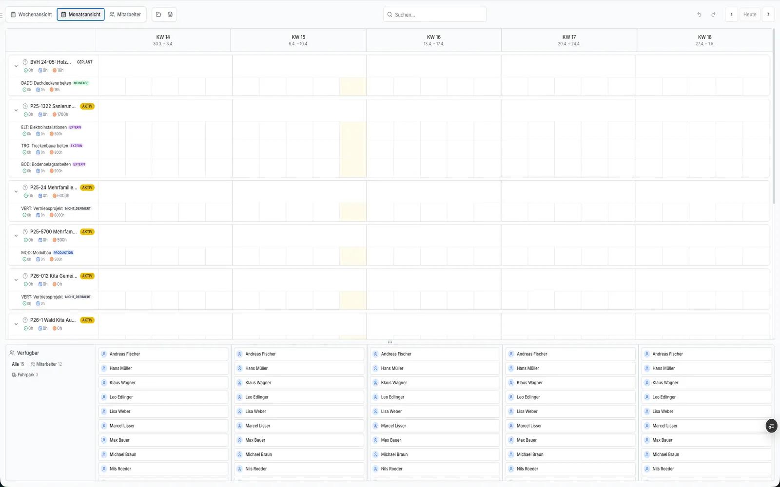 Planned erweitert Asana um eine spezialisierte Kapazitäts- und Ressourcenplanung für Holzbauunternehmen. Projekte, Tasks und ausgewählte Custom Fields aus Asana werden automatisch als Projektphasen mit Soll-Stunden in planned synchronisiert, und Teammitglieder werden über E-Mail-Mapping zugeordnet. Abwesenheiten aus einem separaten Asana-Projekt fließen direkt in die Kapazitätsrechnung ein, sodass Engpässe frühzeitig sichtbar werden. Änderungen in Asana werden per Webhook in Echtzeit übernommen — ohne manuelle Exports. Planned schreibt dabei nicht in Asana zurück, sondern bleibt bewusst eine fokussierte Planungssicht auf den bestehenden Asana-Datenstand.