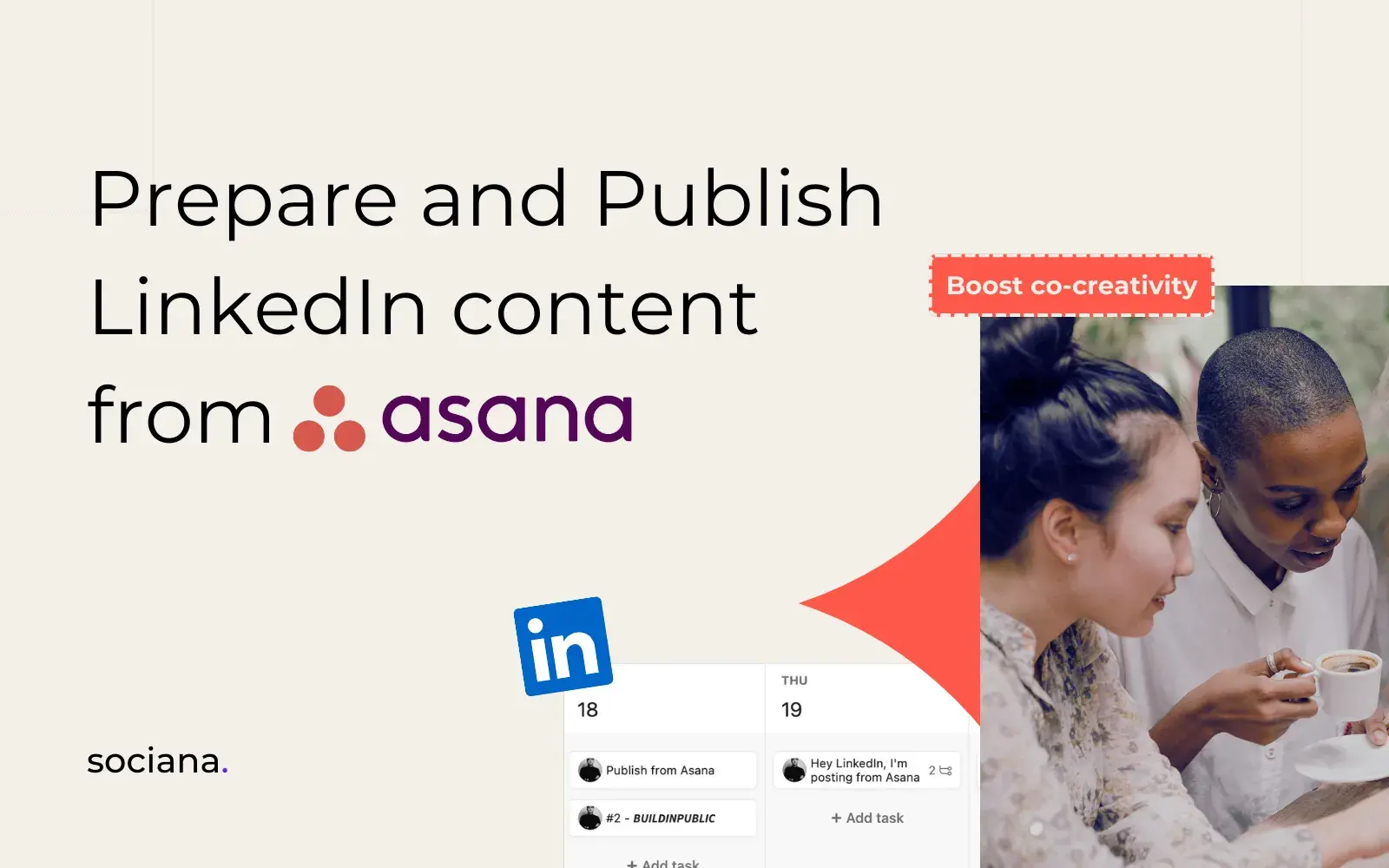 Transform Asana tasks into social media posts by seamlessly connecting your Asana projects to your social networks with Sociana.