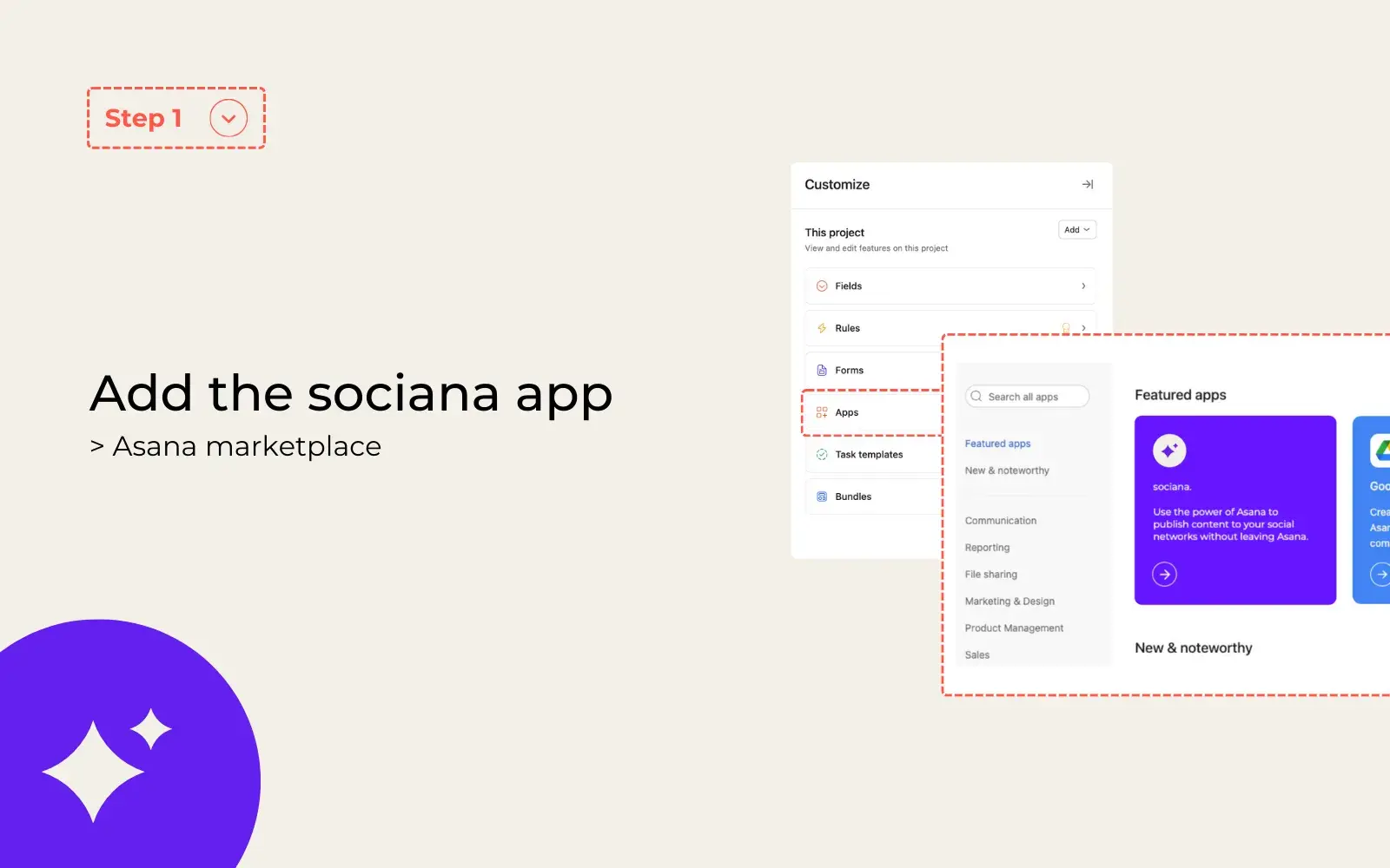 Sociana integrates Asana with your social media accounts, allowing you to effortlessly turn tasks into social media posts without leaving the platform. Simply link your Asana project to your social networks, then select which tasks you want to publish. With Sociana, you can: