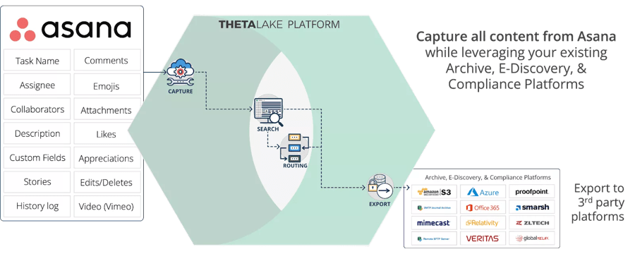 Theta Lake enables compliance, legal, and risk teams to securely capture, retain, retrieve, and review team communications in Asana.