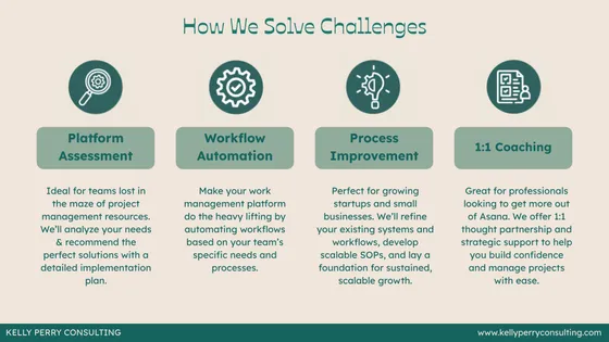 Since 2021, I’ve leveraged Asana both as a project manager and process improvement consultant to scale operations and improve collaboration. Now, as an Asana Services Partner, I’m here to help your team do the same by developing critical norms, automating key processes, and building scalable workflows.