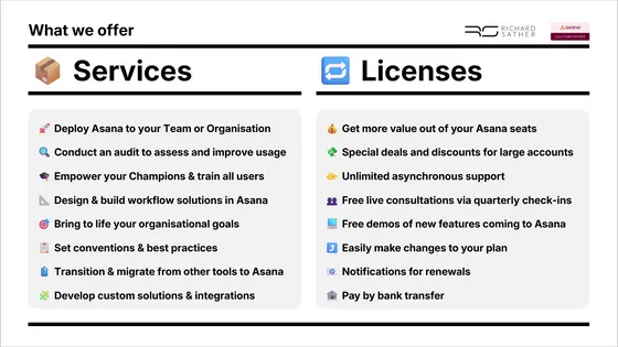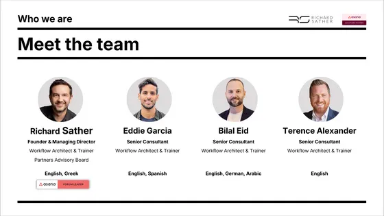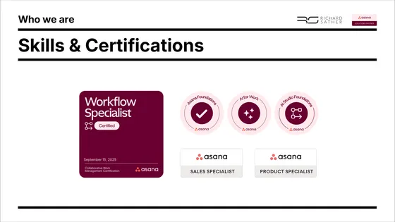 Working with Richard has been genuinely transformative for our team. His deep understanding of Asana, combined with his ability to tailor the platform to our complex workflows, helped us unlock capabilities we didn't realize were possible. Richard is incredibly clear, patient, insightful with a lovely sense of humor. I highly recommend Richard to any team wanting to maximise the true value of Asana and elevate the way they operate.
