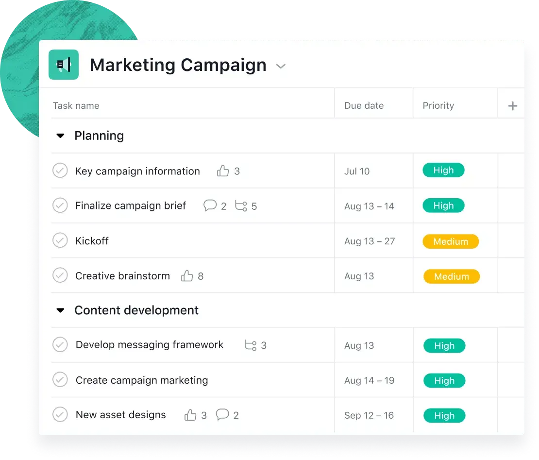 Experimente já a AsanaVeja como o trabalho se distribui ao longo do tempo. Controle tarefas dependentes, não agendadas e sobrepostas, e crie planejamentos com os quais as equipes possam contar.